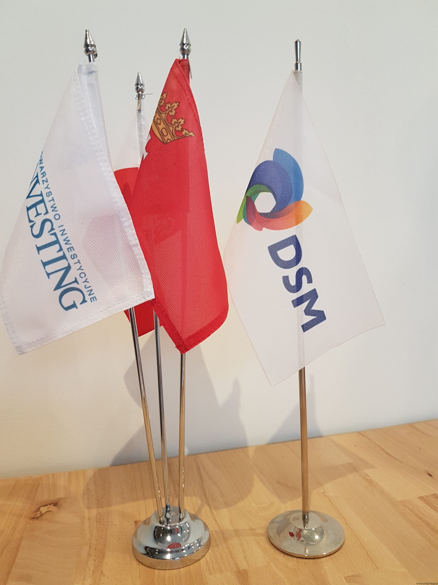 Flagi są podwójnie stębnowane nićmi tytanowymi, co zapewnia im dużą wytrzymałość na działanie czynników atmosferycznych typu wiatr, deszcz, śnieg itp.