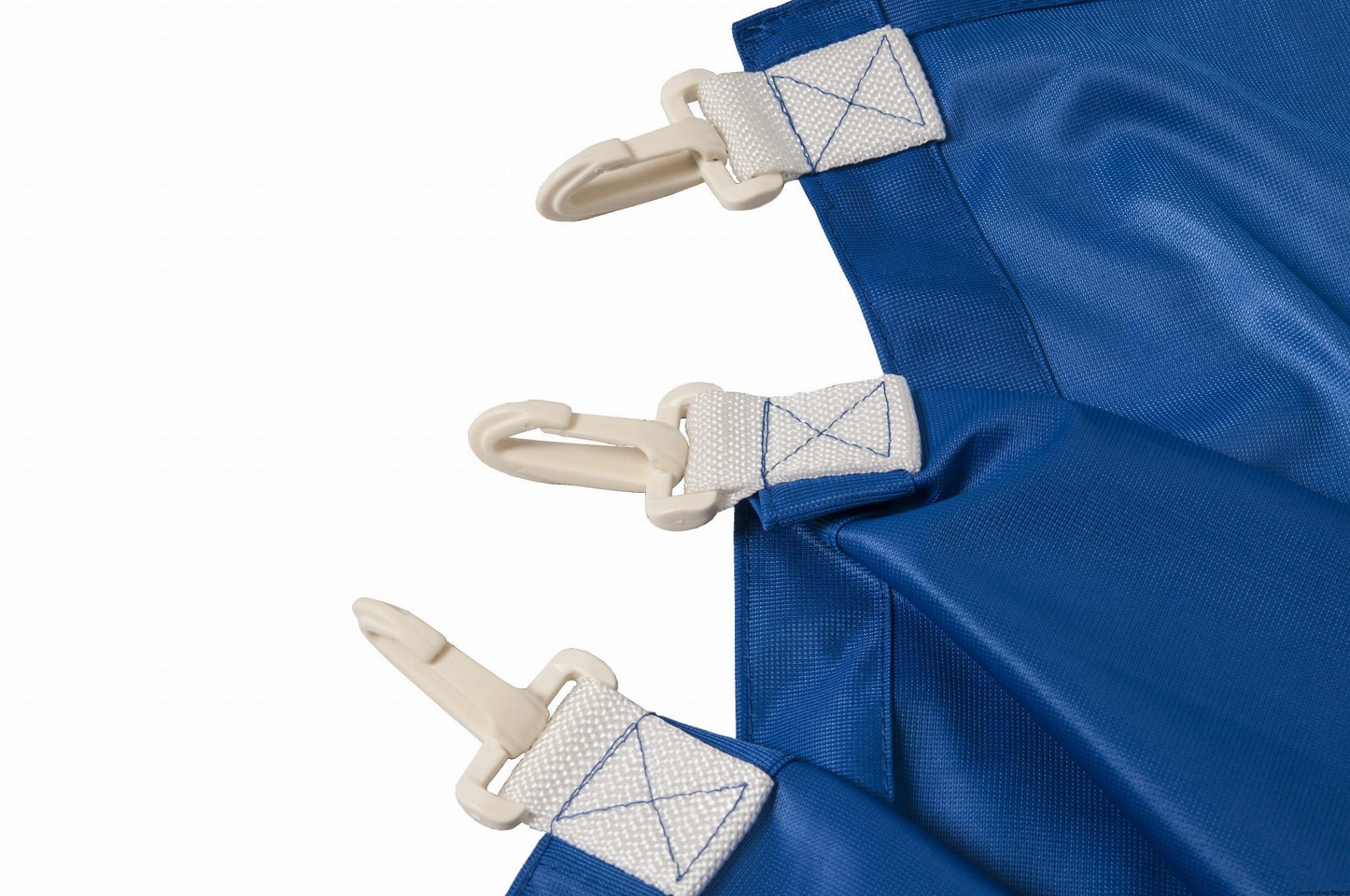 Wykończenie: brzegi obszyte podwójnym szwem, wykończone krytą taśmą na której zakute są 2 metalowe oczka, aby można było flagę przypiąć do masztu. Możliwe również doszyte karabińczyki pcv